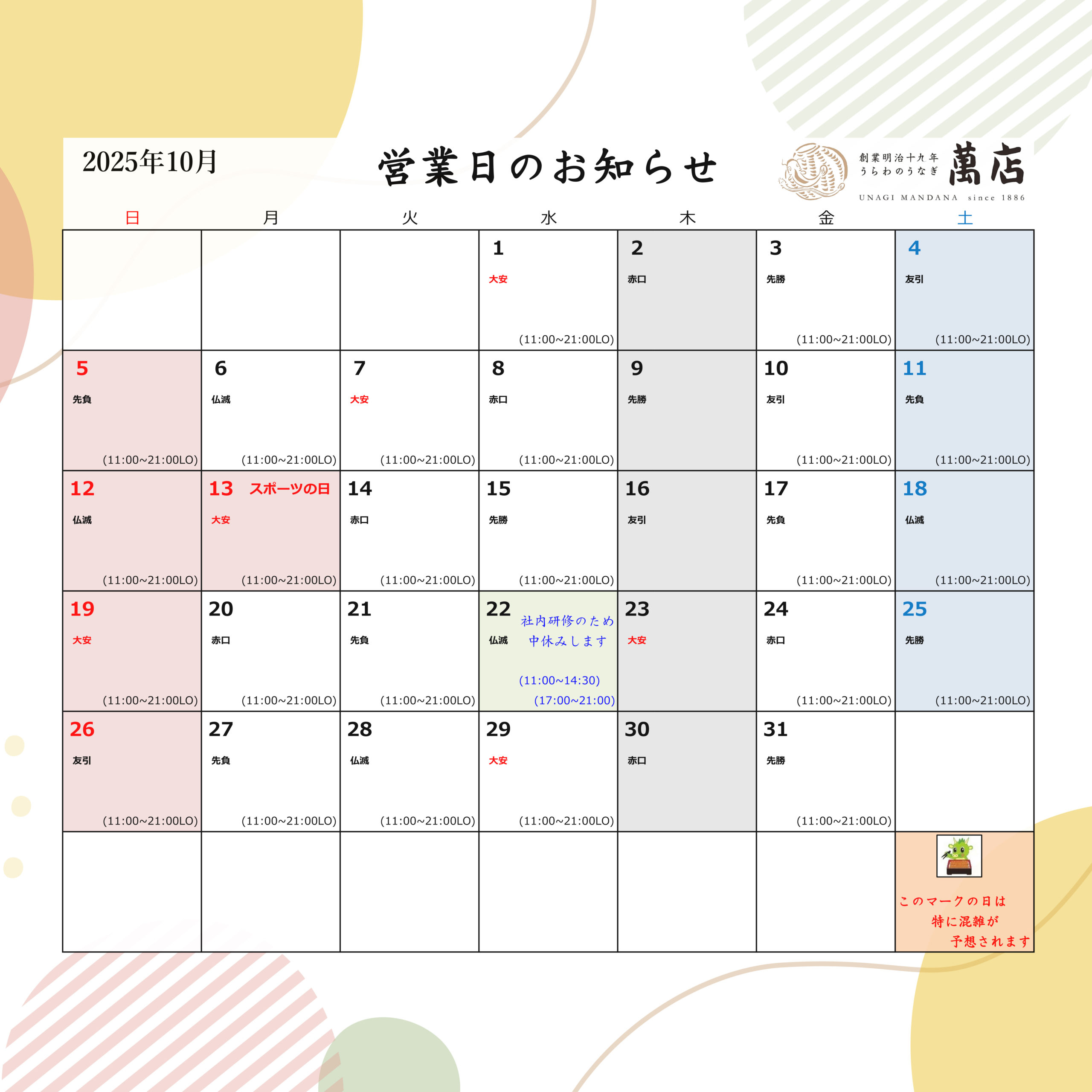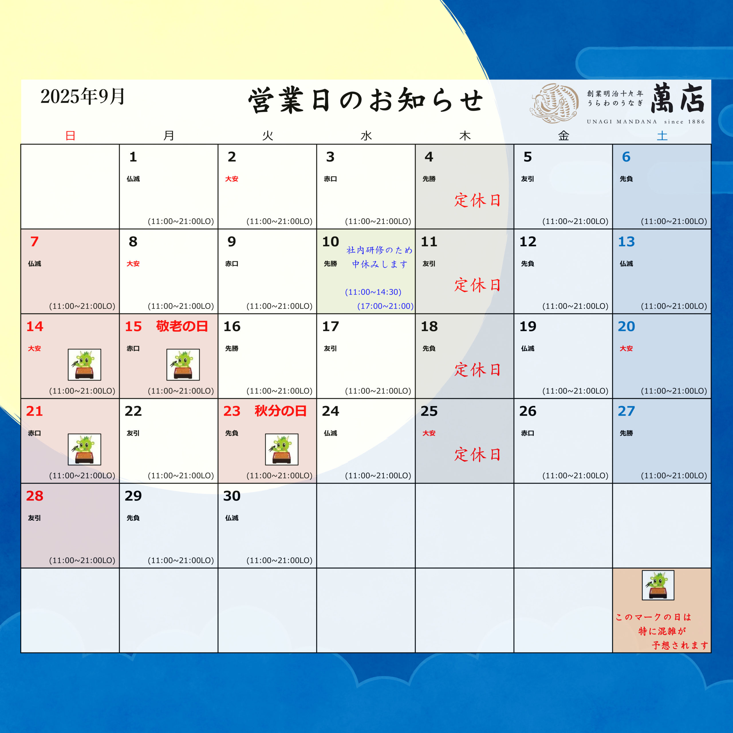 📅 定休日・営業時間のご案内 📅
