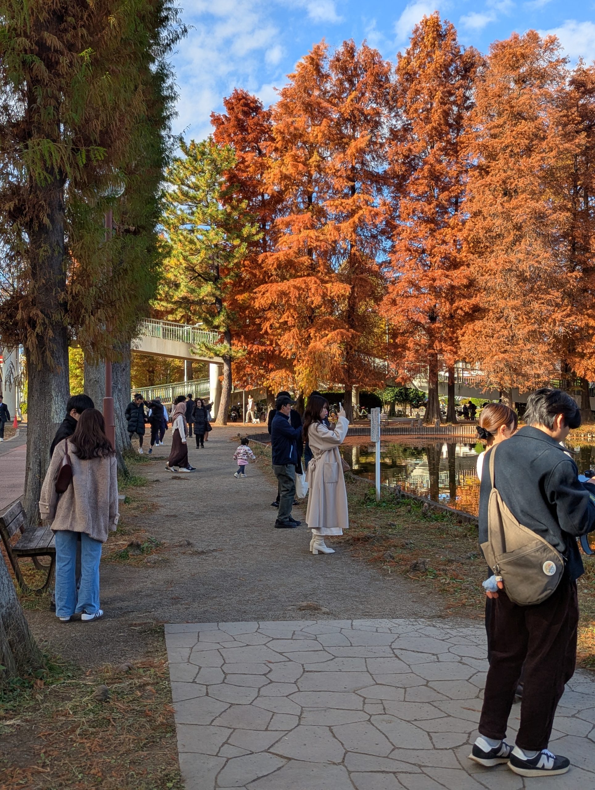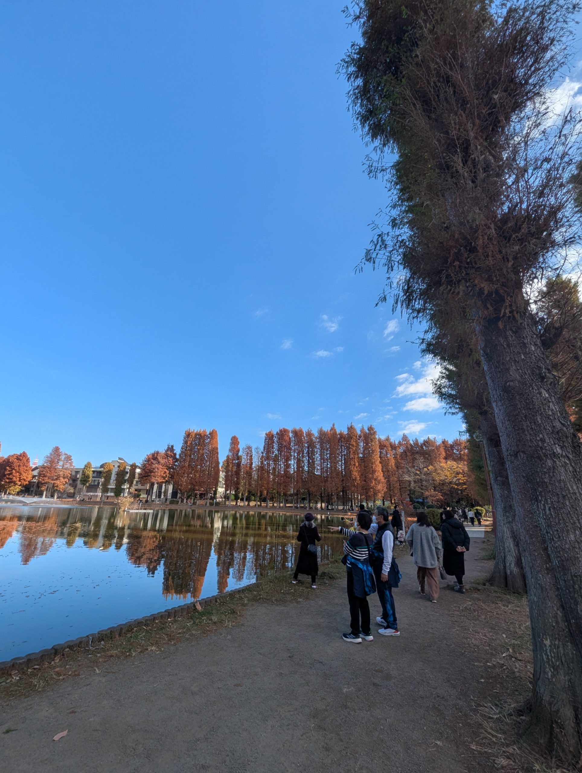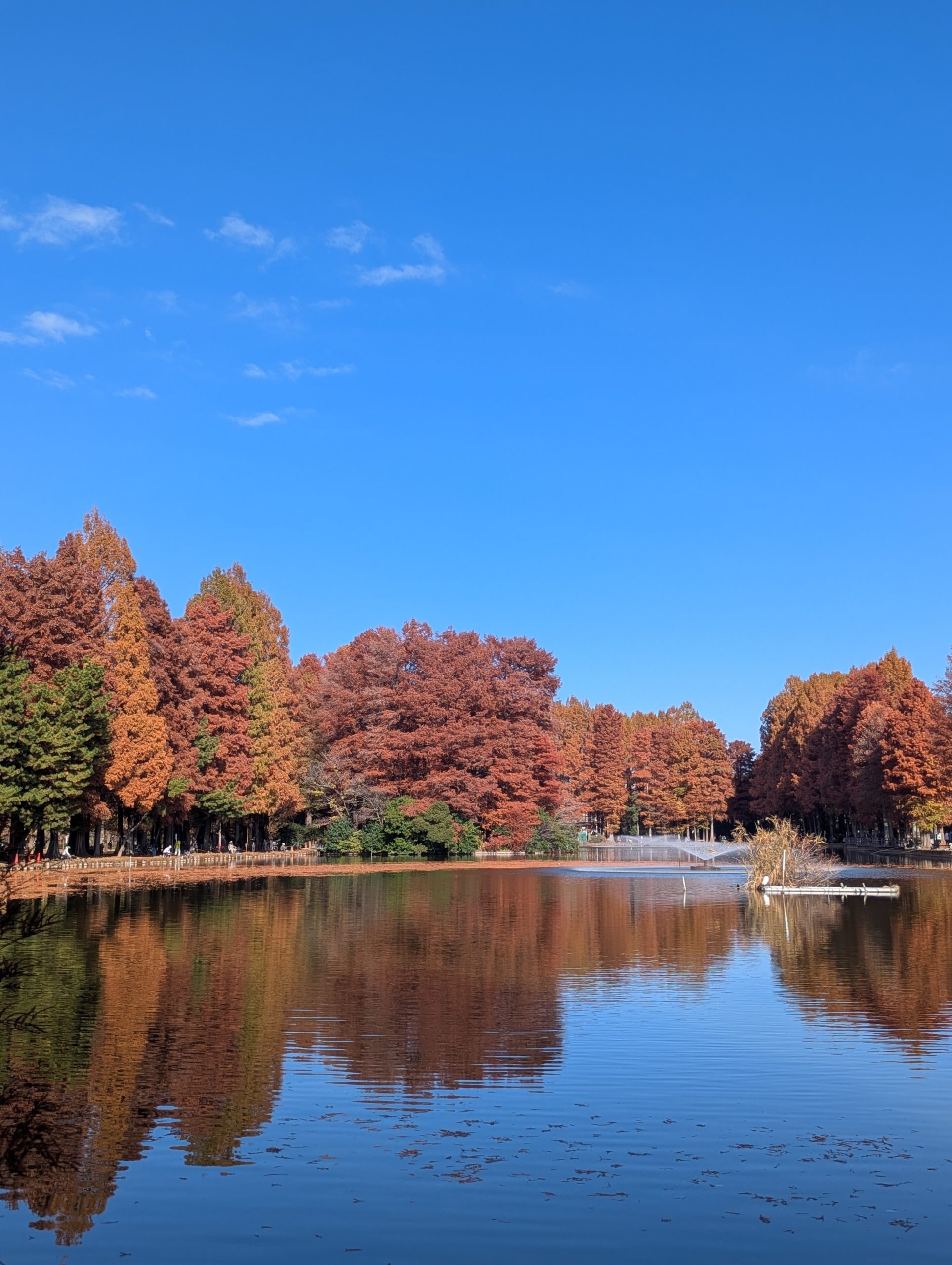 #秋の散歩 #水面に映る景色 #メタセコイア並木